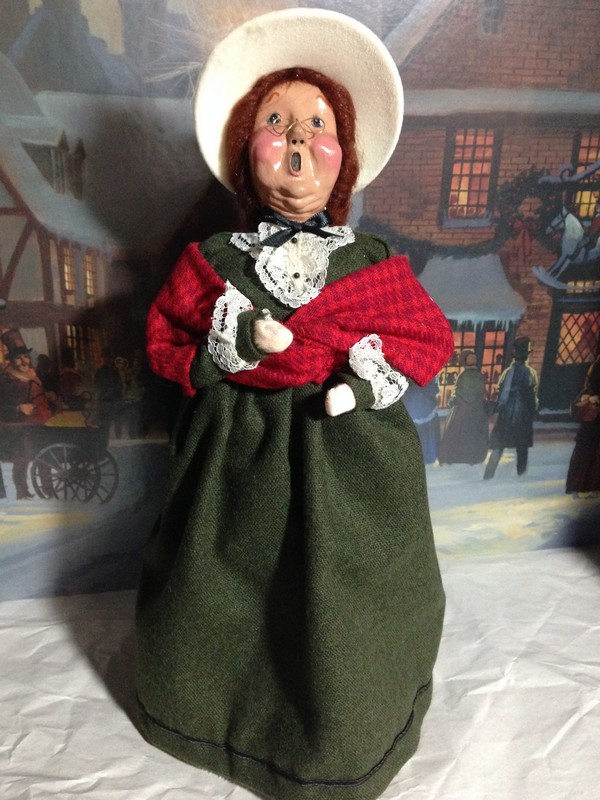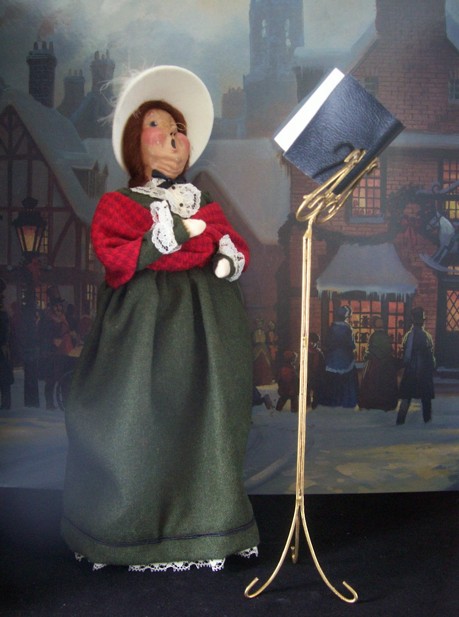 Byers’ Choice Choir Director (woman) with Music Stand, 1993, Retired. Stands 13″ tall; separate wire music stand is 11 1/2″ tall. Pre-owned, non-smoking home; perfect condition.