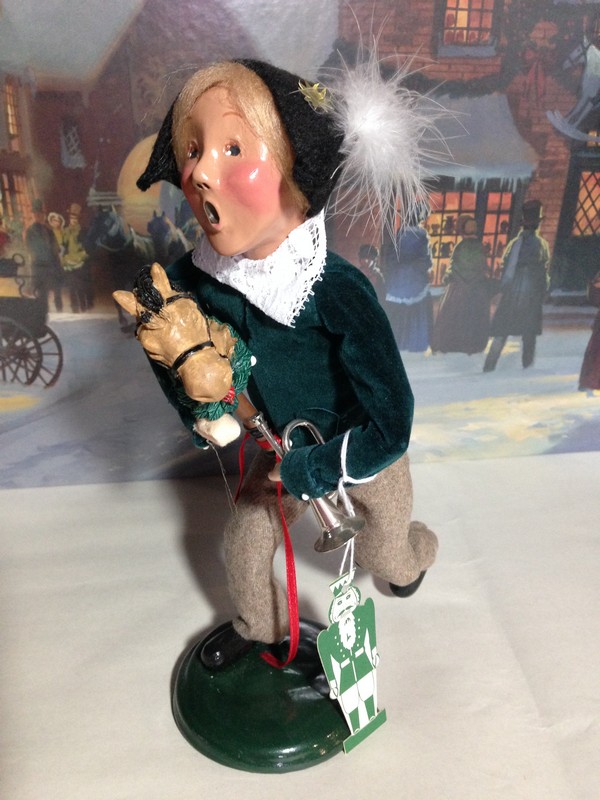 Byers’ Choice ‘Fritz’ Boy on Hobby Horse with bugle, 1995, Second Edition. The Nutcracker Series with original tag. Stands 10″ tall. Pre-owned, non-smoking home; perfect condition.