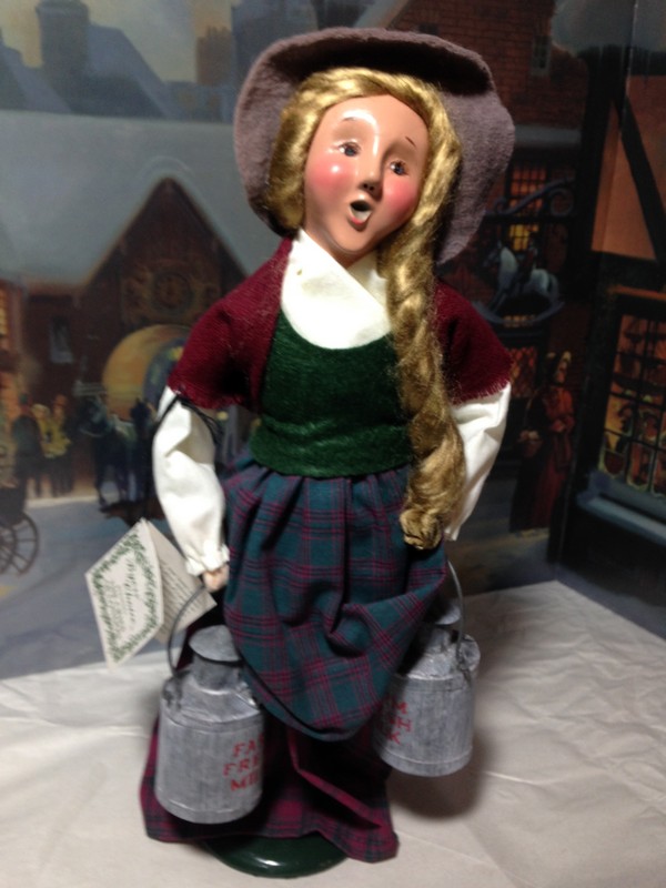 Byers’ Choice Milk Maid with Milk Jugs, 1997, retired. With original Cries of London series tag. Stands 14″ tall. Pre-owned, non-smoking home; perfect condition.